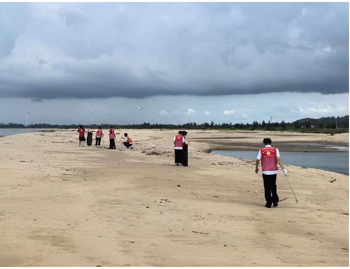 志愿者们在东方市八所镇墩头村海湾捡拾垃圾