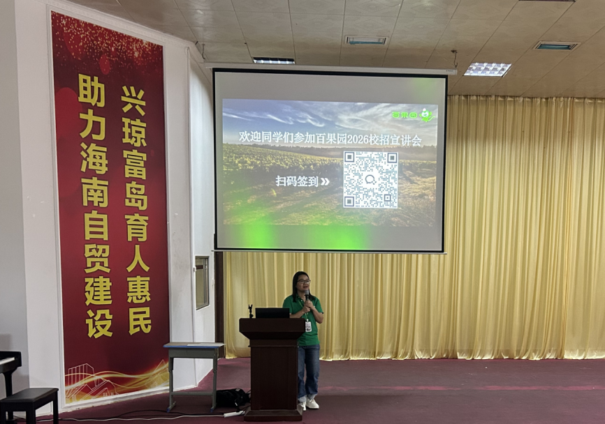 本次会议由优秀毕业生专升本经验分享会、西部计划学习分享会以及百果园企业专场宣讲会组成。会议上半场,优秀学子代表依次现身传经送宝。22会计3班毕业生夏微在去年专升本考试中以240分的高分成功考取琼台师范学院,她为有志专升本的同学分享了专升本备考经验与技巧,提供了实用参考;22金融3+2(本)班毕业生徐士涵在去年考取西部计划,成功入职五指山畅好中心学校,专程返校为现场参会学生详细介绍了西部计划政策,分享了自己在五指山教育局服务的初心与规划,鼓励大家积极投身基层项目。2位优秀毕业生均与学生在现场进行互动,为学生答疑解惑。