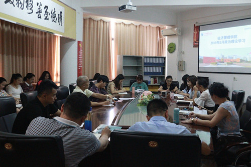5月31日下午,经济管理学院在行政楼412会议室召开全体教职工政治理论学习会议,会议由经济管理学院党总支书记符国繁主持。