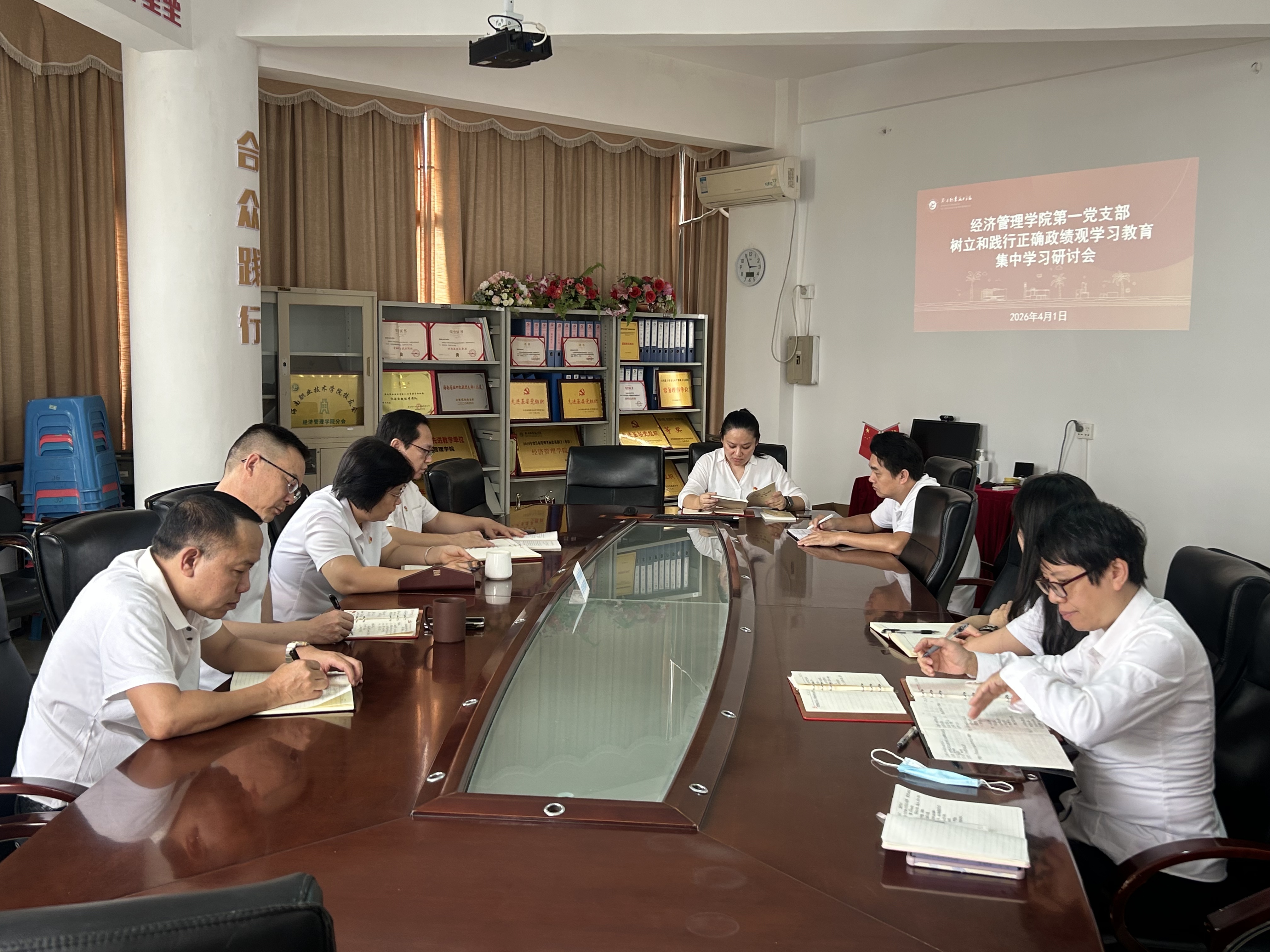 4月1日下午,经济管理学院第一党支部在行政楼四楼会议室召开树立和践行正确政绩观学习教育集中学习研讨会。会议由支部书记主持,支部全体党员参加。